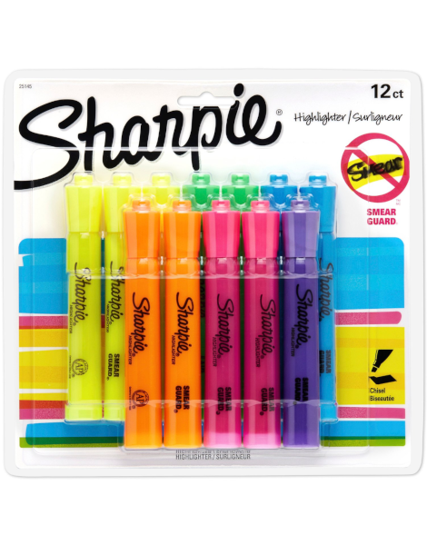 Se trata de un marcador de tinta permanente, con punta fina y colores surtidos. Su barril y tapa son de plástico, y su tinta es resistente al agua y a la luz. Tiene un diseño ergonómico y una tapa con clip.