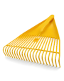 Es un producto que tiene una estructura de plástico resistente, con un mango ergonómico y un cabezal curvo con 21 dientes. Tiene un color amarillo. Mide 50 cm de largo, 50 cm de ancho y 4 cm de alto.